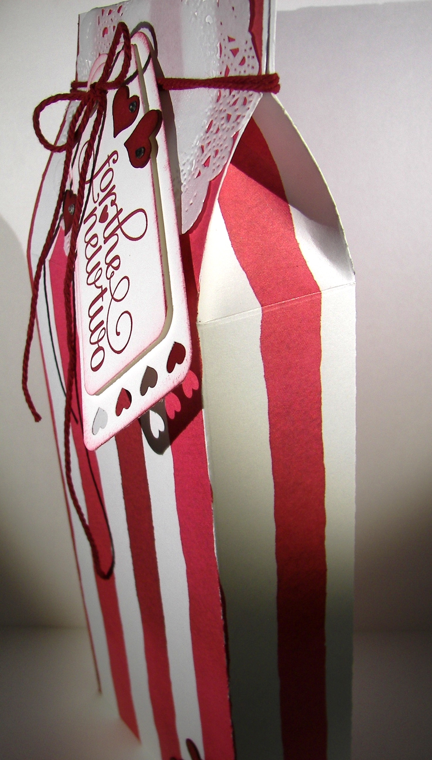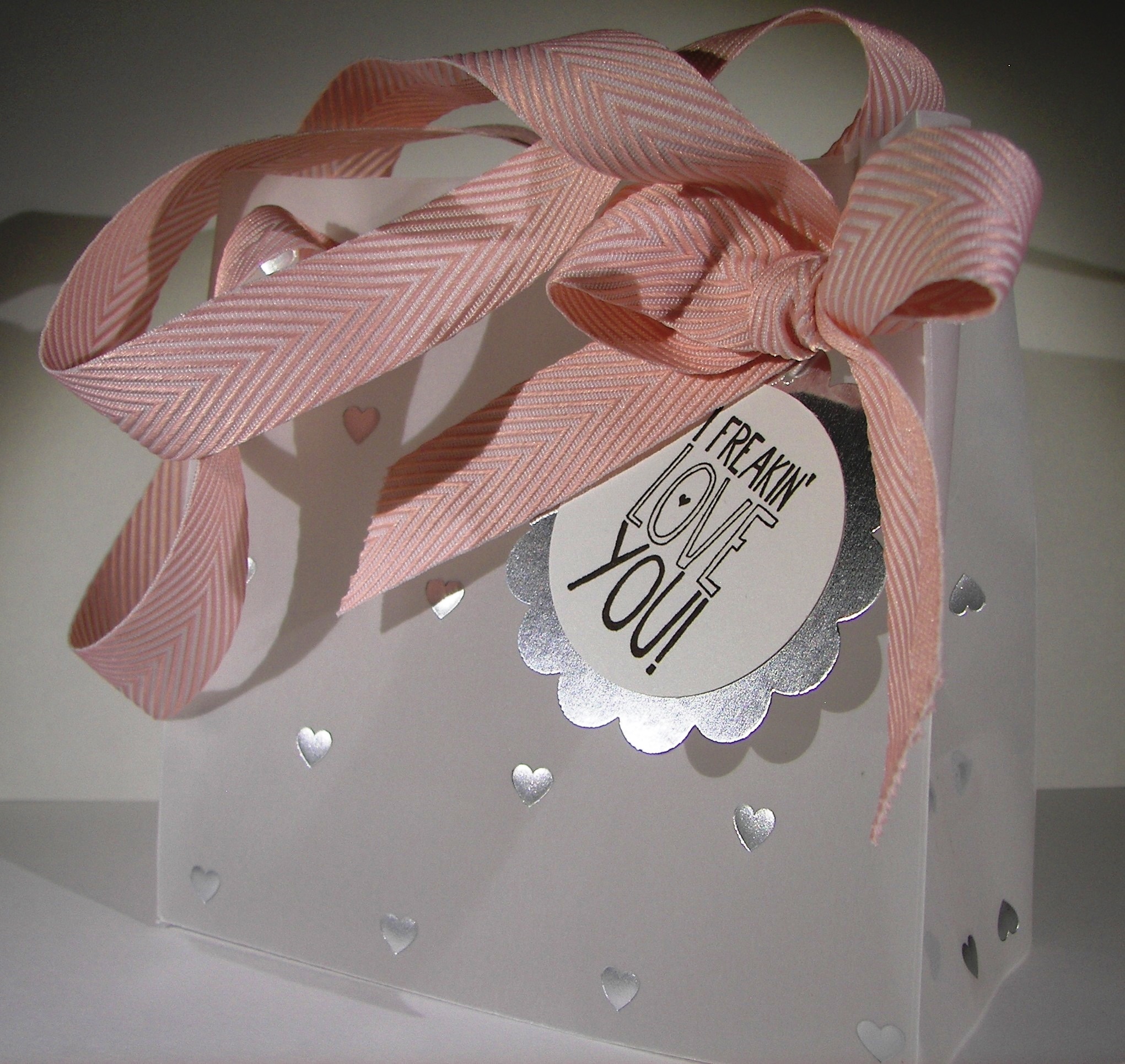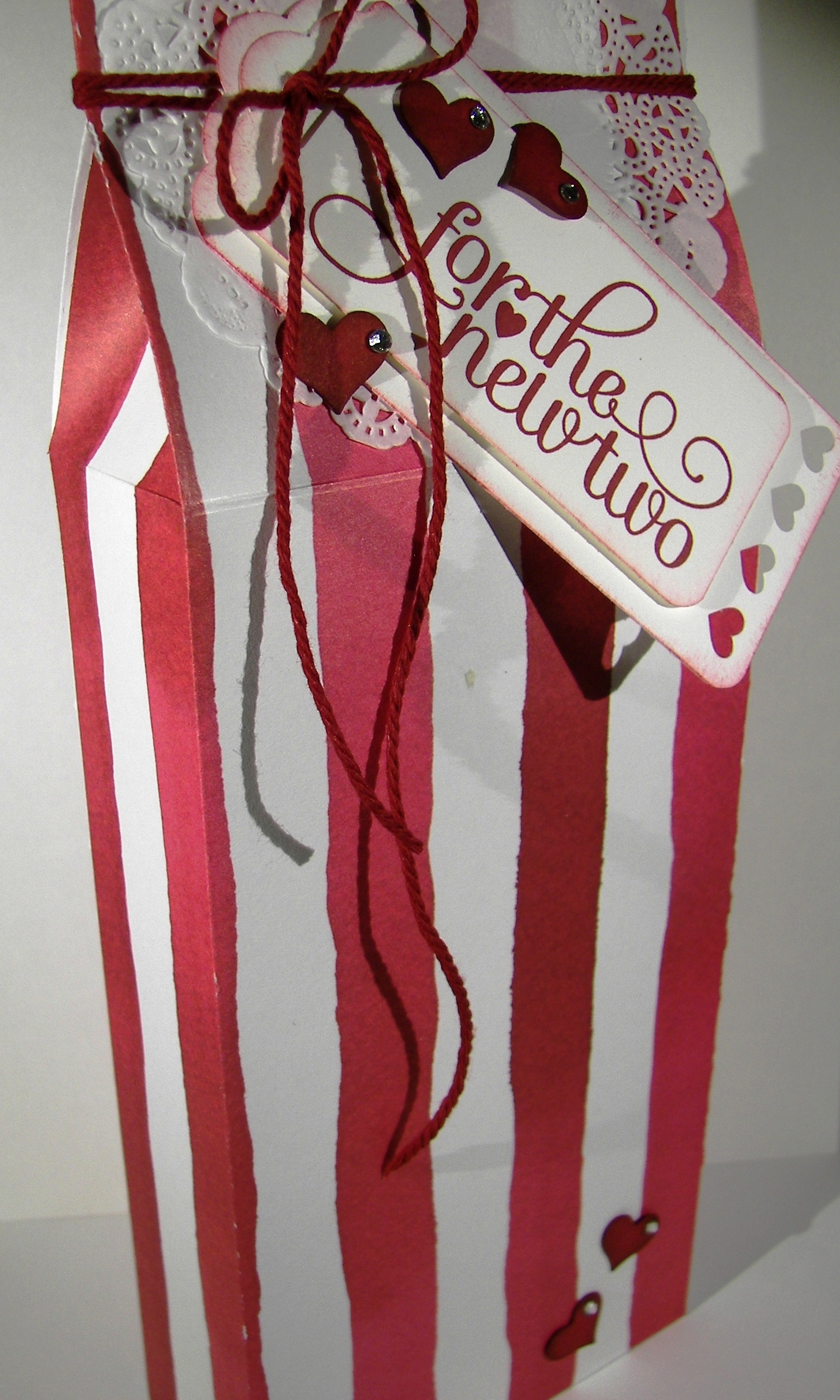 The solid bakers twine really makes me happy. I had longer strings attached to each balloon and trimmed them after they were squished into place with glue dots. With the extra hanging off the card I tied one simple knot and used it as the embellishment for the gift card sized gift bag. I do hate wasting product. It turned out great!