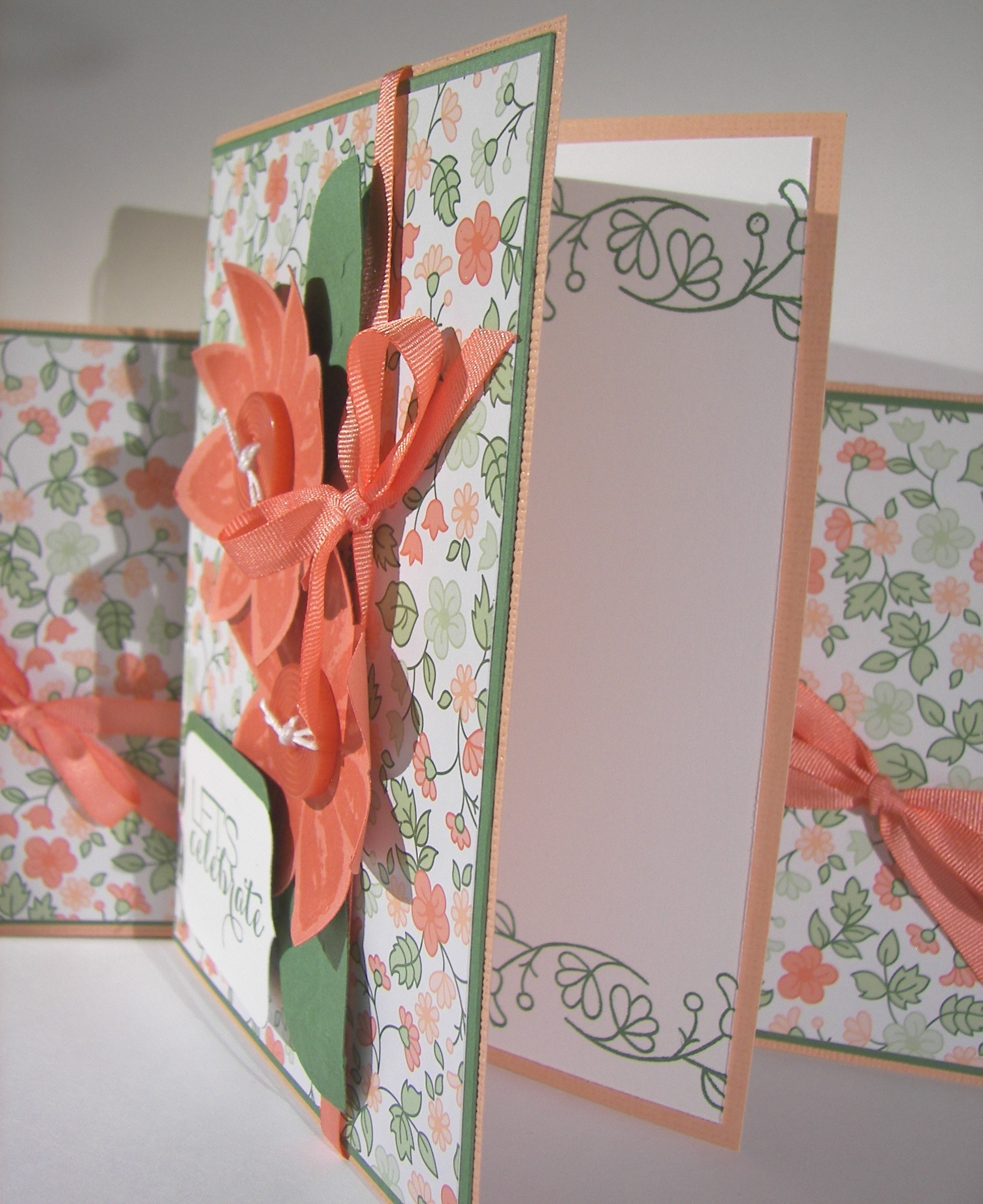 I kept the boarders narrow and popped the front up on dimensionals. A nice clean look for an elegant card. I think I have just the person to send it to.