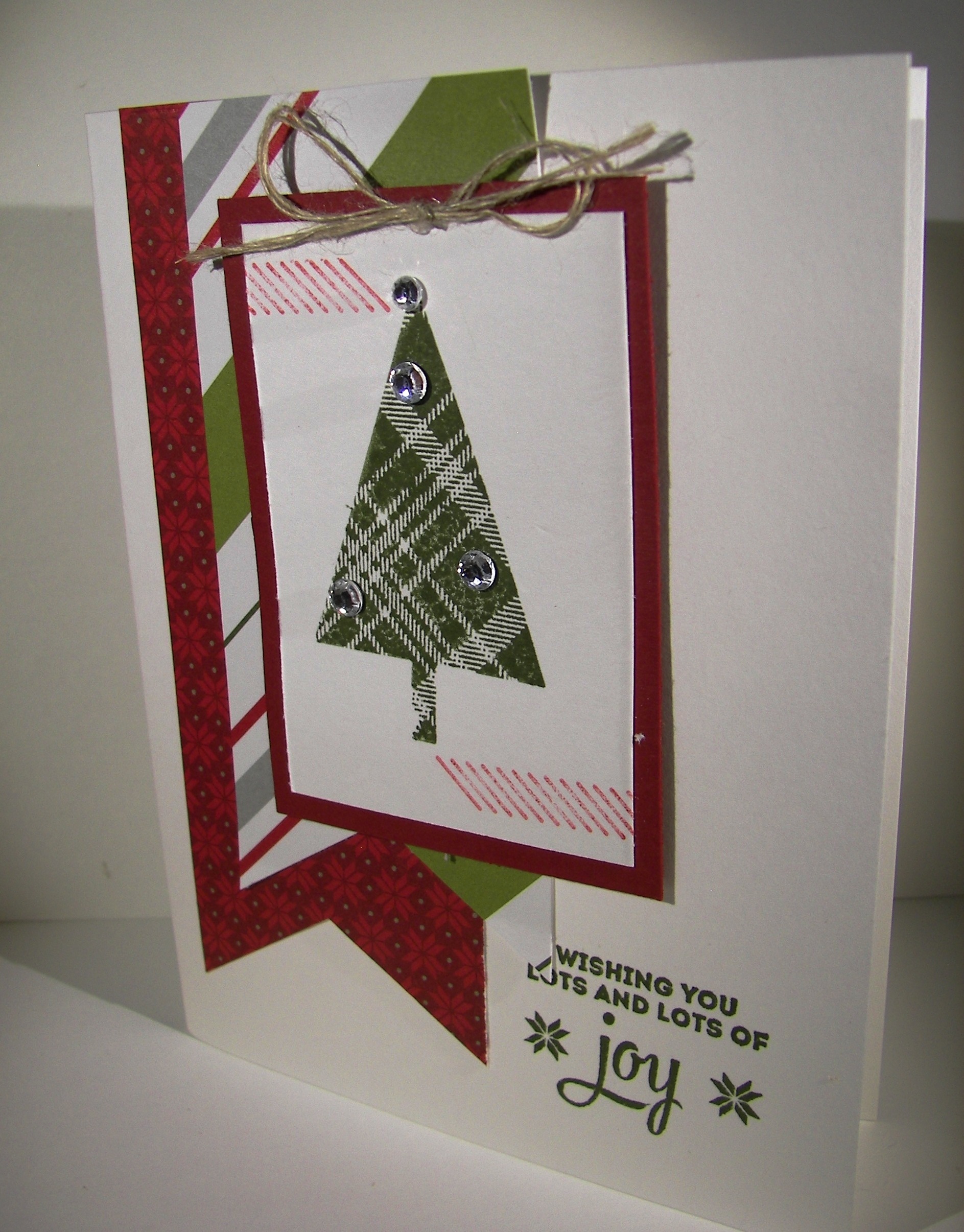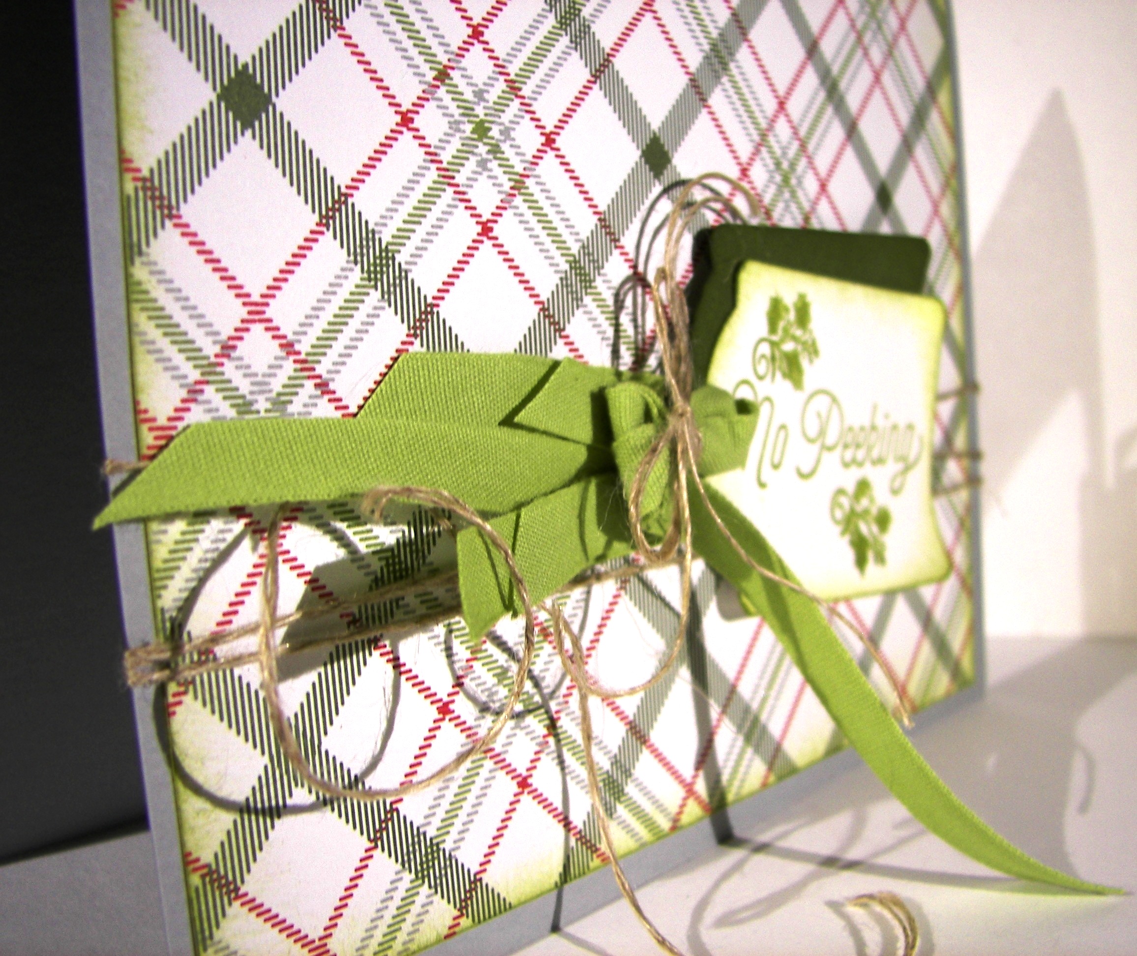 Well, of course I sponged this lovely plaid paper before adding it to the card base. A few wraps with even more thread were just what I needed. I certainly have enjoyed this holiday card series, but we aren’t done yet! Still five more cards to share. So much fun!