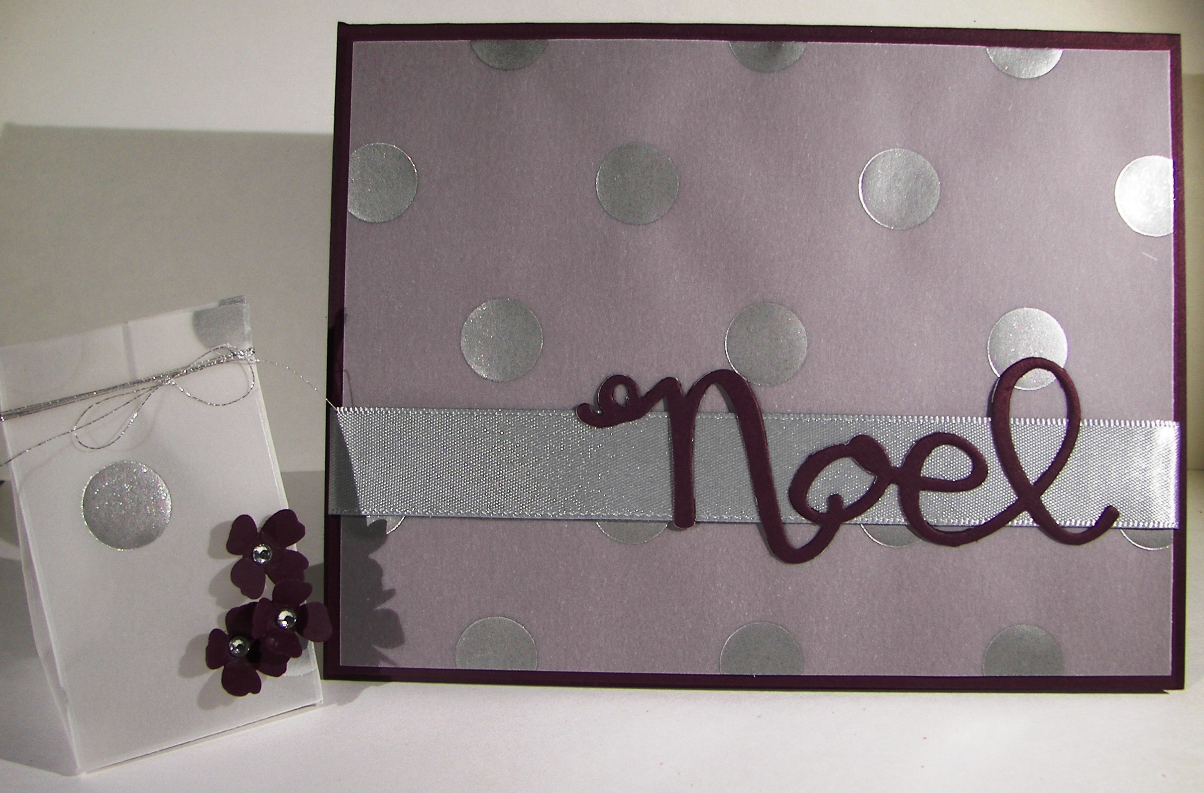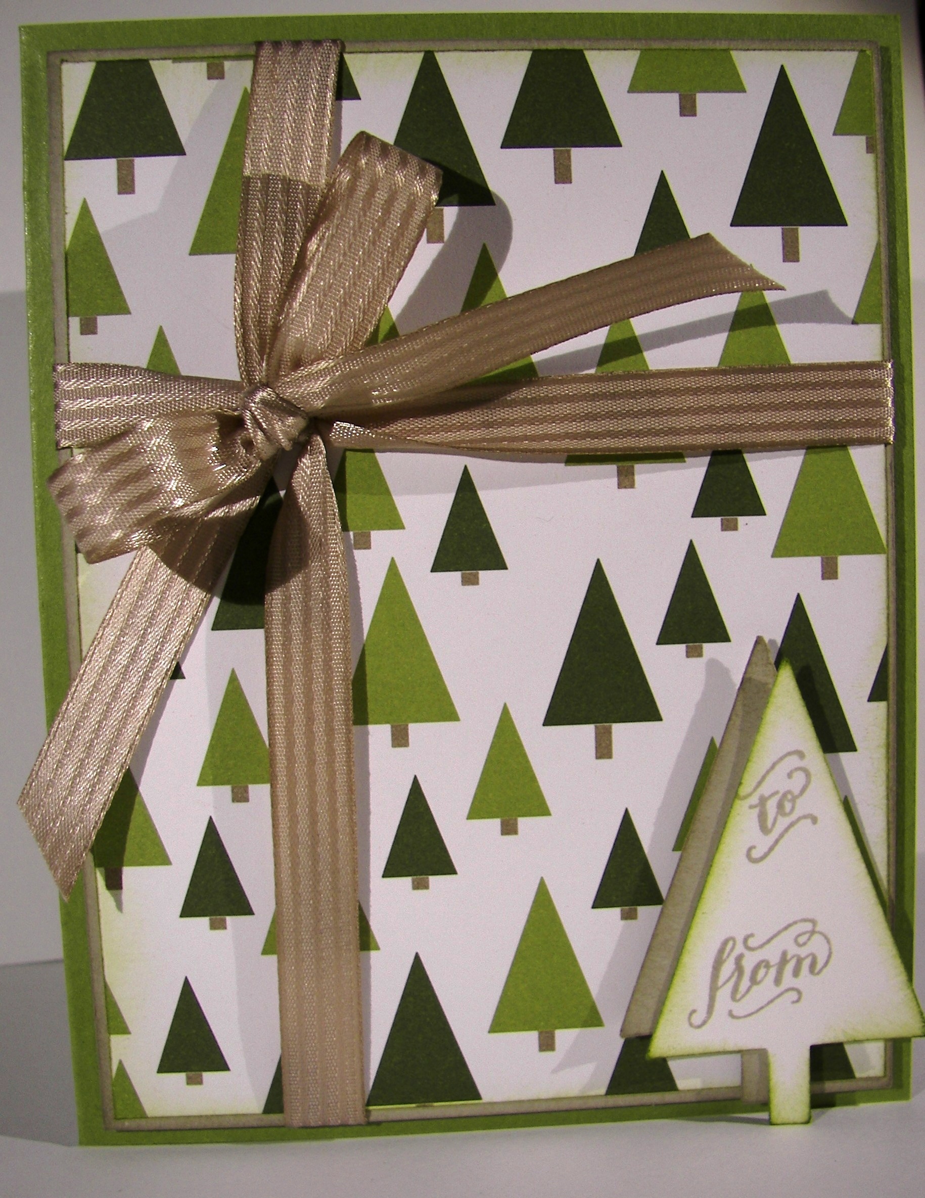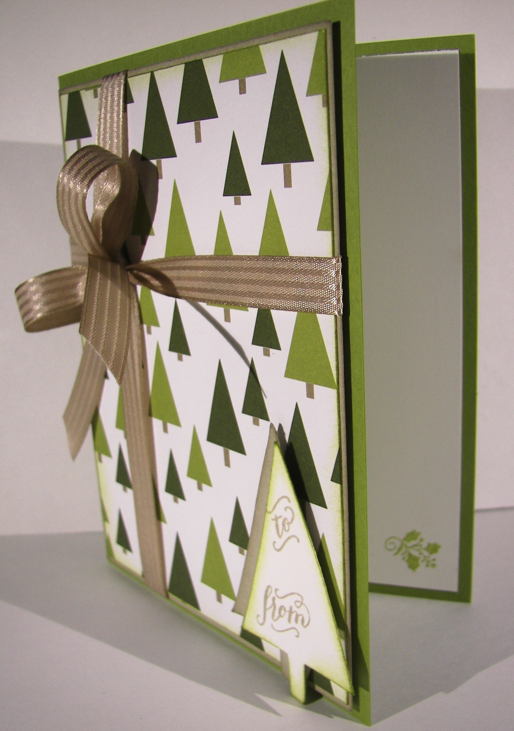 For a simple card, there is a lot of dimension going on. The ribbon and thread work great together with the tag duo and still manage to lay flat. Three strands of ribbon were poked through the tags and then bound in linen thread. I left the lengths of linen thread rather long and just curled them a bit with my bone folder. Love it! The ribbons were cut at different lengths to add interest and that finished the tag. I thought it would be an adorable gift tag too. Might have to make more of those.