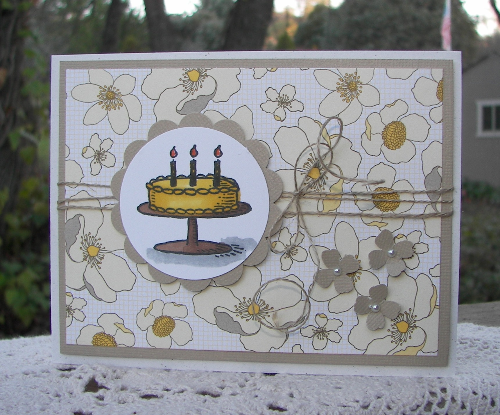 While I saw sewing I saw a card coming together. Mix my two favorites, right? I stamped with one of the border stamps in old olive on very vanilla. I used my aqua painter and the other ink colors to color in the flower and leaf patterns. Yet another background creation. And now I have two all occasion cards ready to go.