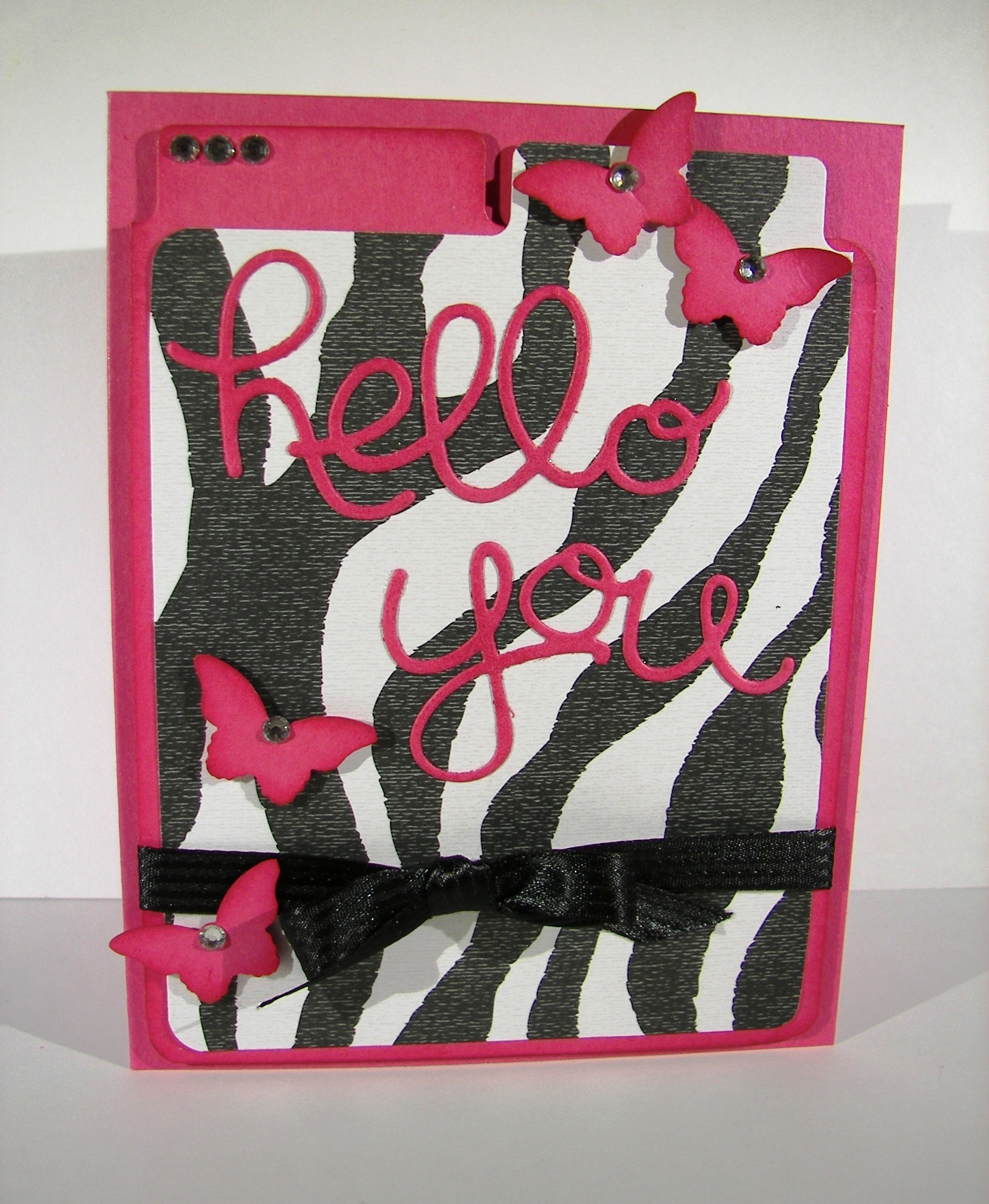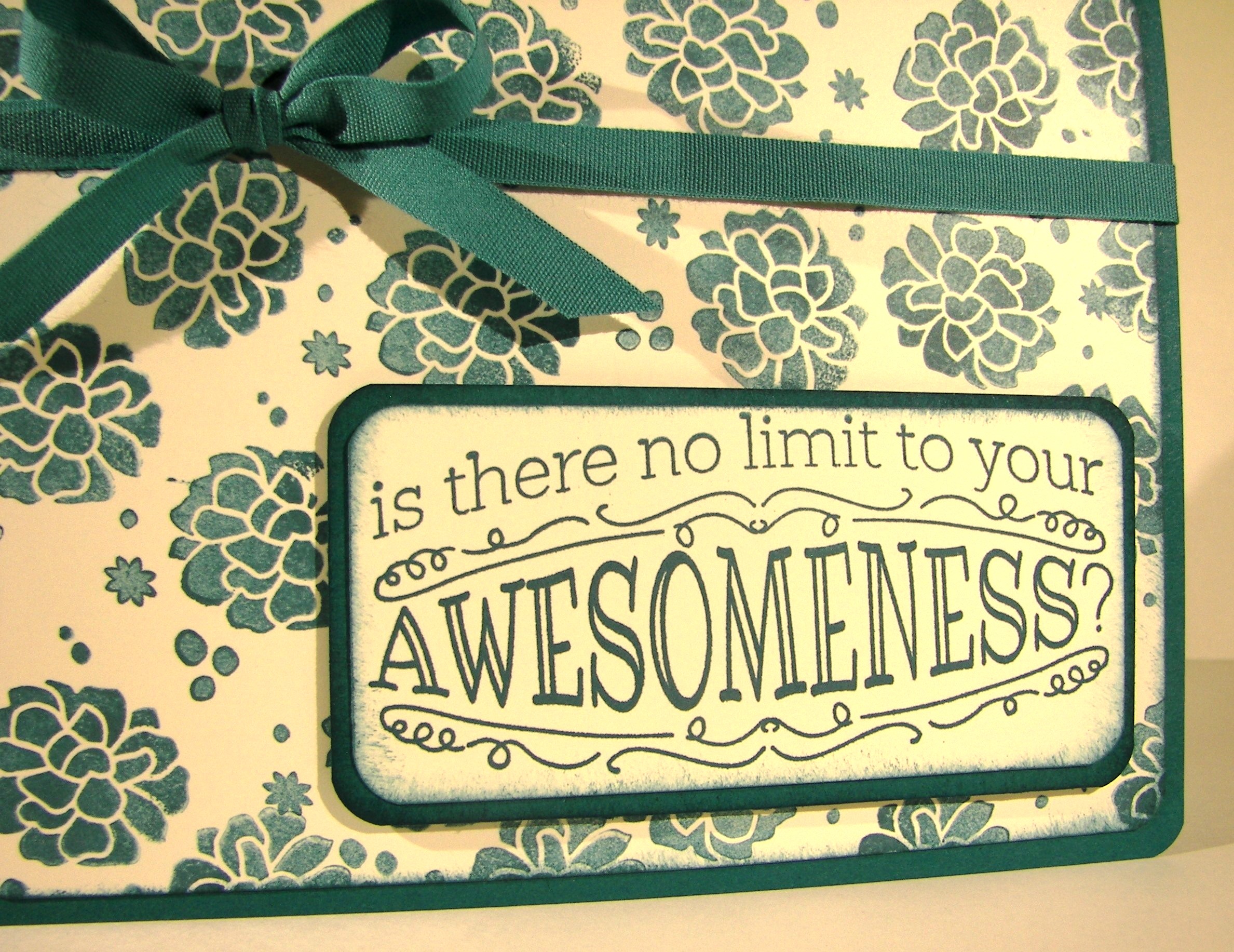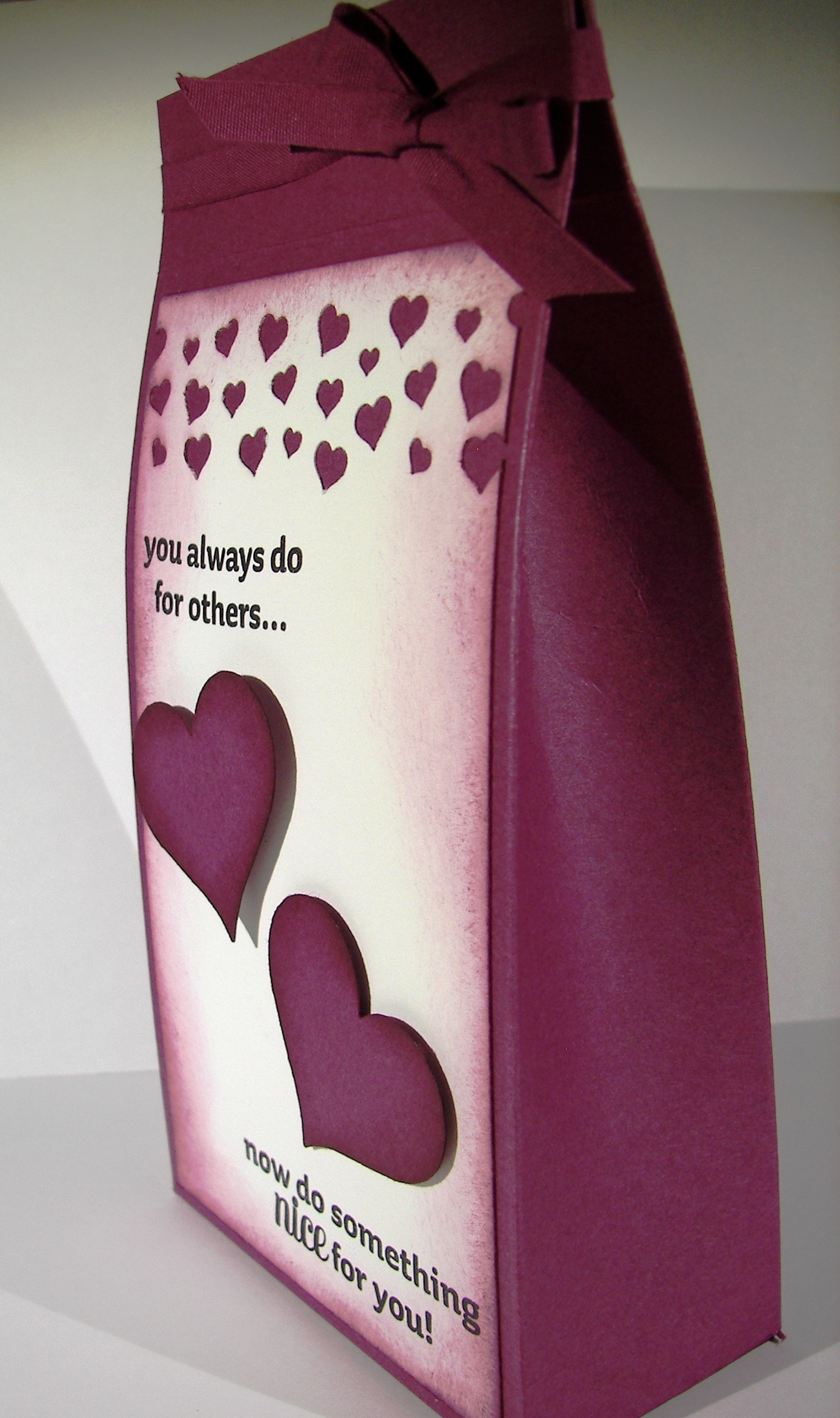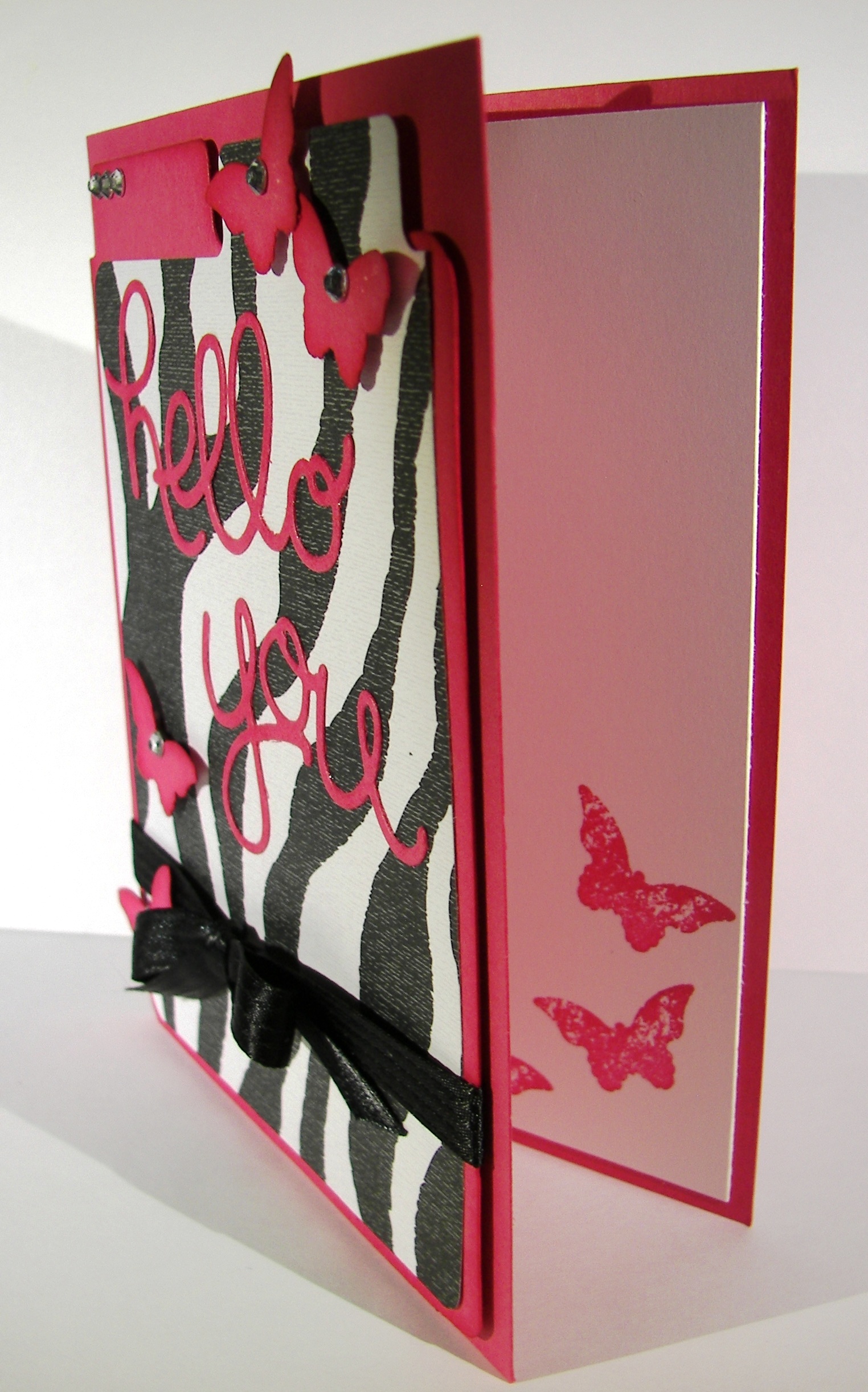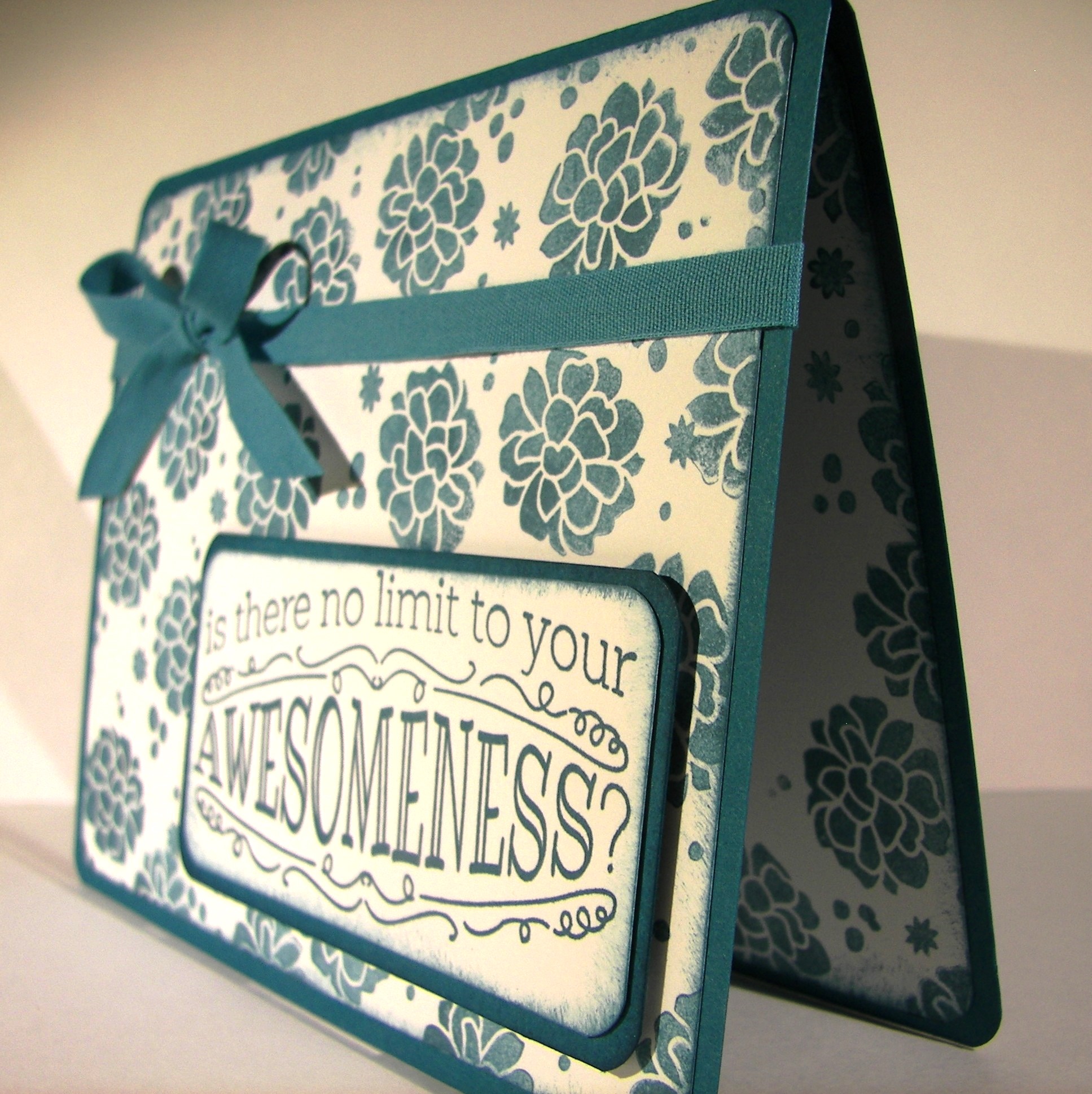 There isn’t even any ink here at all. No sponging or a sentiment either. Very clean and simple, with a ton of flowers, my favorite. Kind of like my comfort craft. All this card is about is punches, punches and more punches. Five different flowers all layered about with basic pearls to finish them off. I used the striped cotton ribbon because I wanted it to physically stand out as much as the flowers would. Bows and flowers and now I feel better.