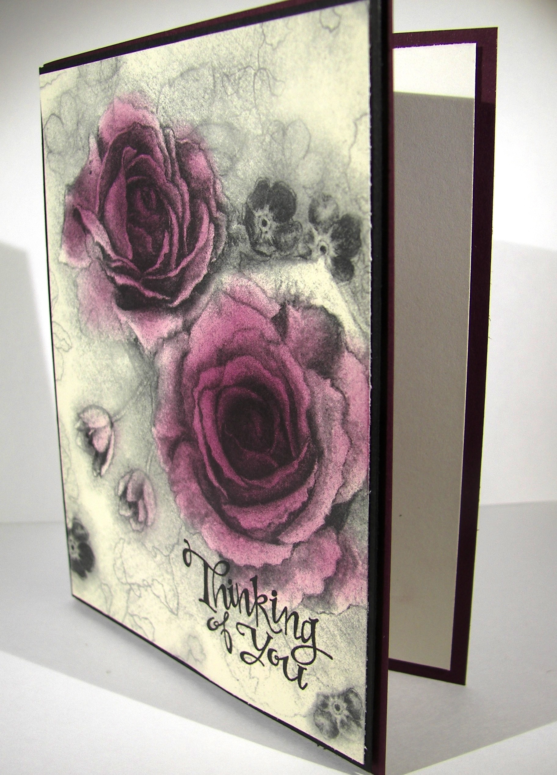 This is day three of seven projects re-purposing leftover workshop kits. The only thing this card has in common with the first sample is color and a floral motif. Wow, I love how it turned out. When I made this I thought it was lovely, but didn’t have a special someone to give it to. Sad to say that now I do. I do love having somewhere to express sincere thoughts and feelings. This will be perfect.