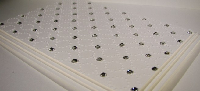 I had the thought that the foam strips would look like a white border, and they did kind of, but I didn’t like how that looked. So I ran some glue around the edges, placed some guilding flakes on the glue and brushed them in place. That covered that problem quite well. I punched out plenty of hearts using the hearts border punch, adorable of course. Added in some glitter, which really wanted out the corners I might add.