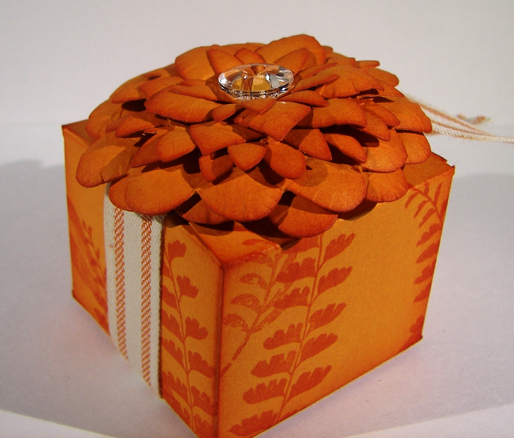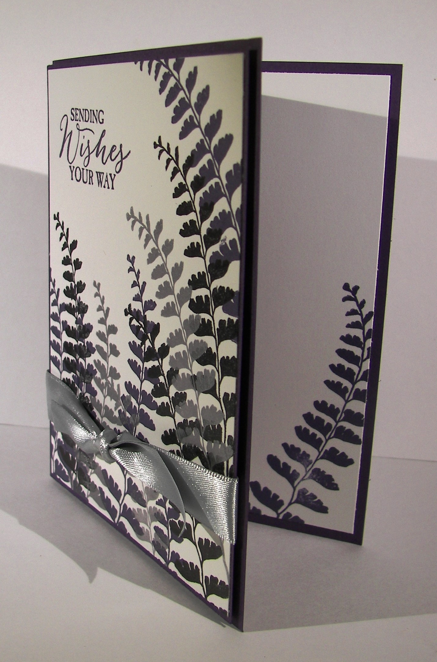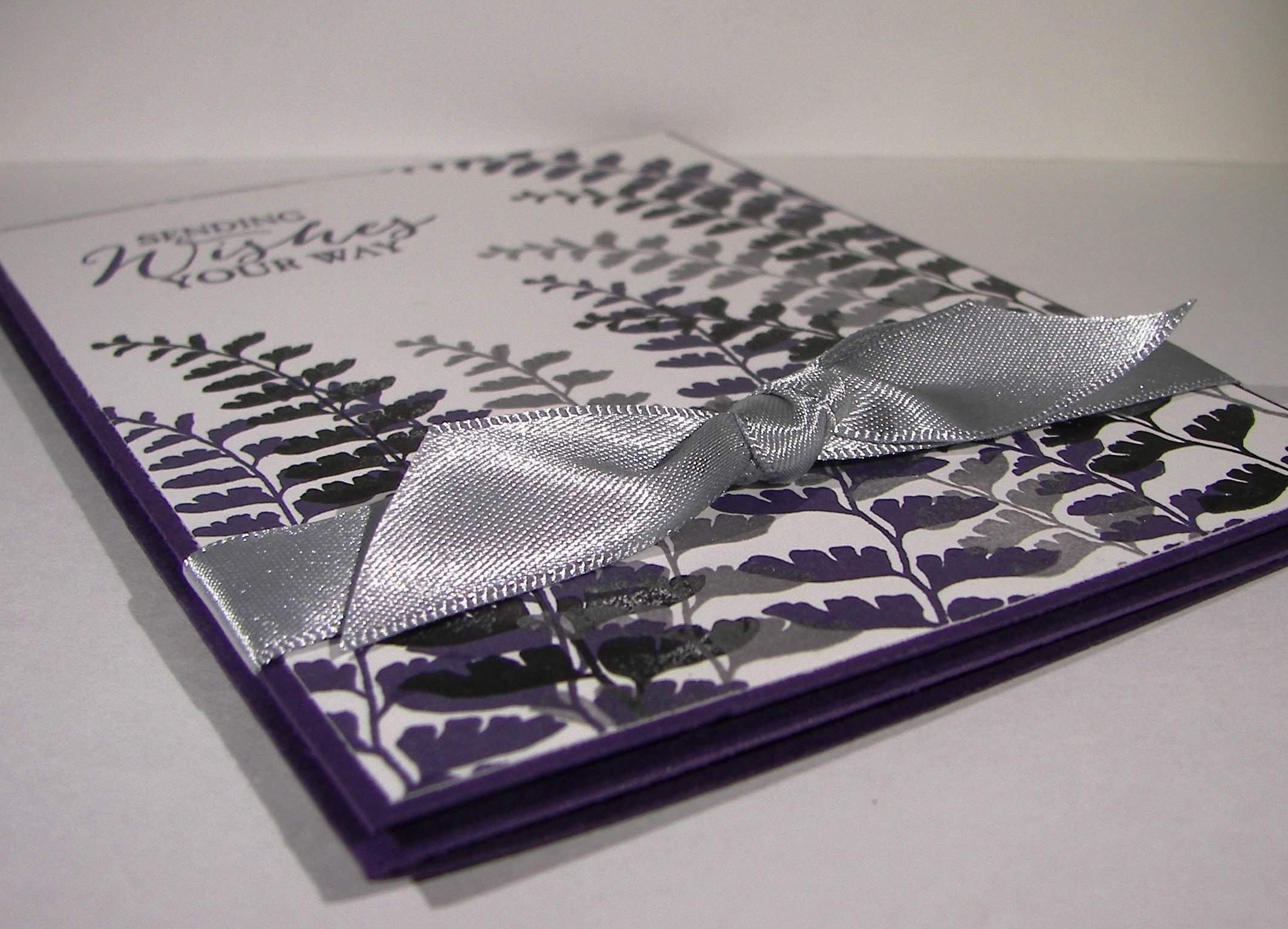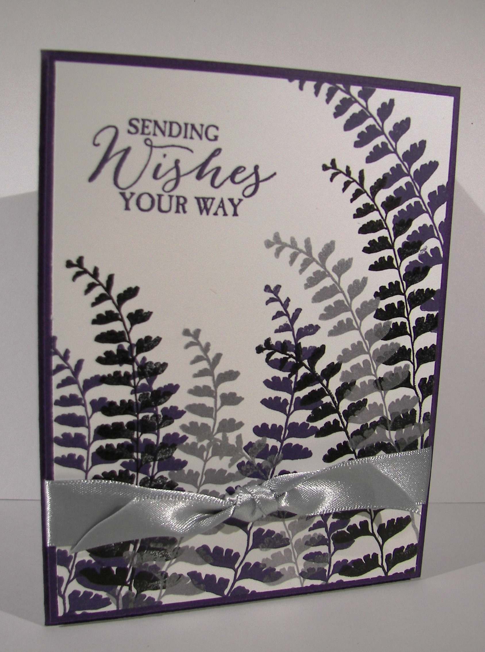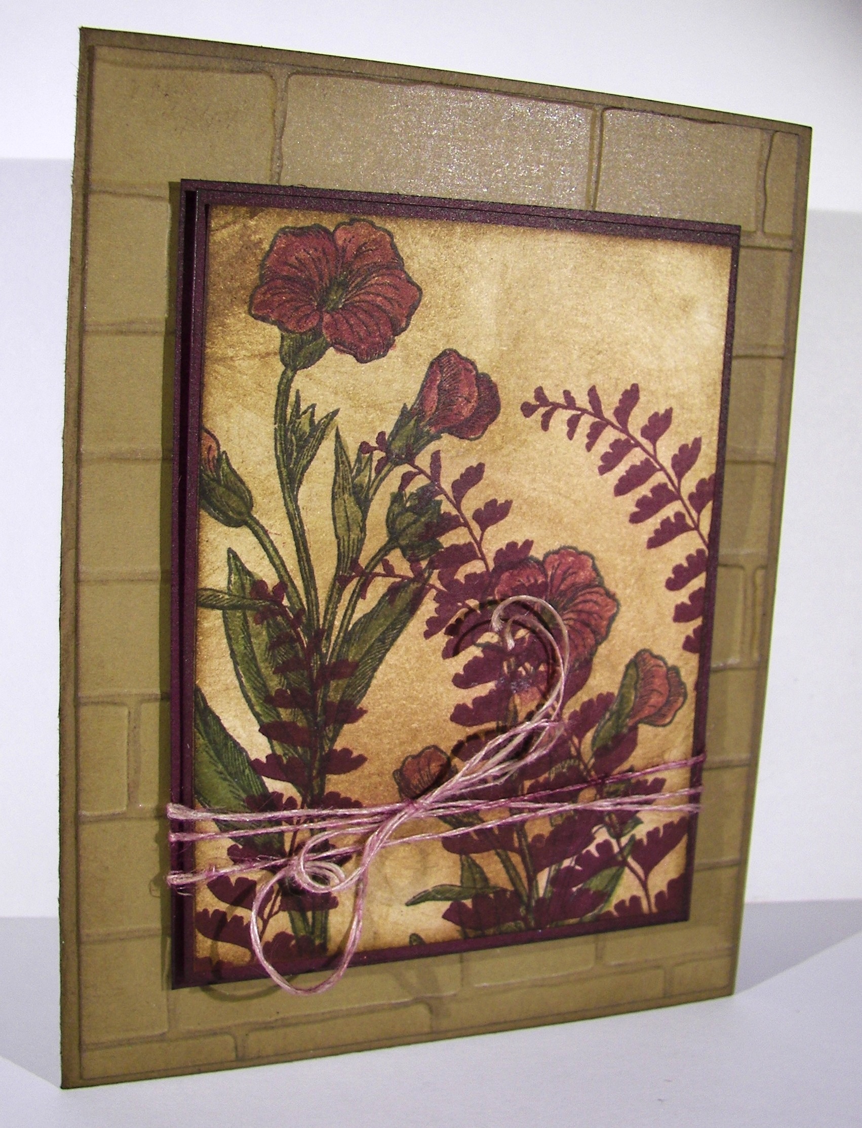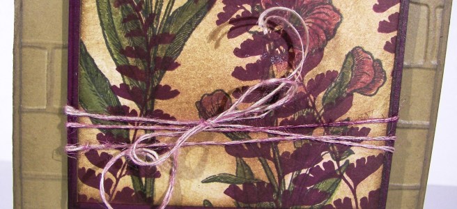 After a few hours I came back to see how it ended up. Just like this. I even controlled myself and didn’t add anything else. No more color, or blending or water droplets. It was accented with copper foil paper and copper metallic thread. What a great all occasion card to have on hand.