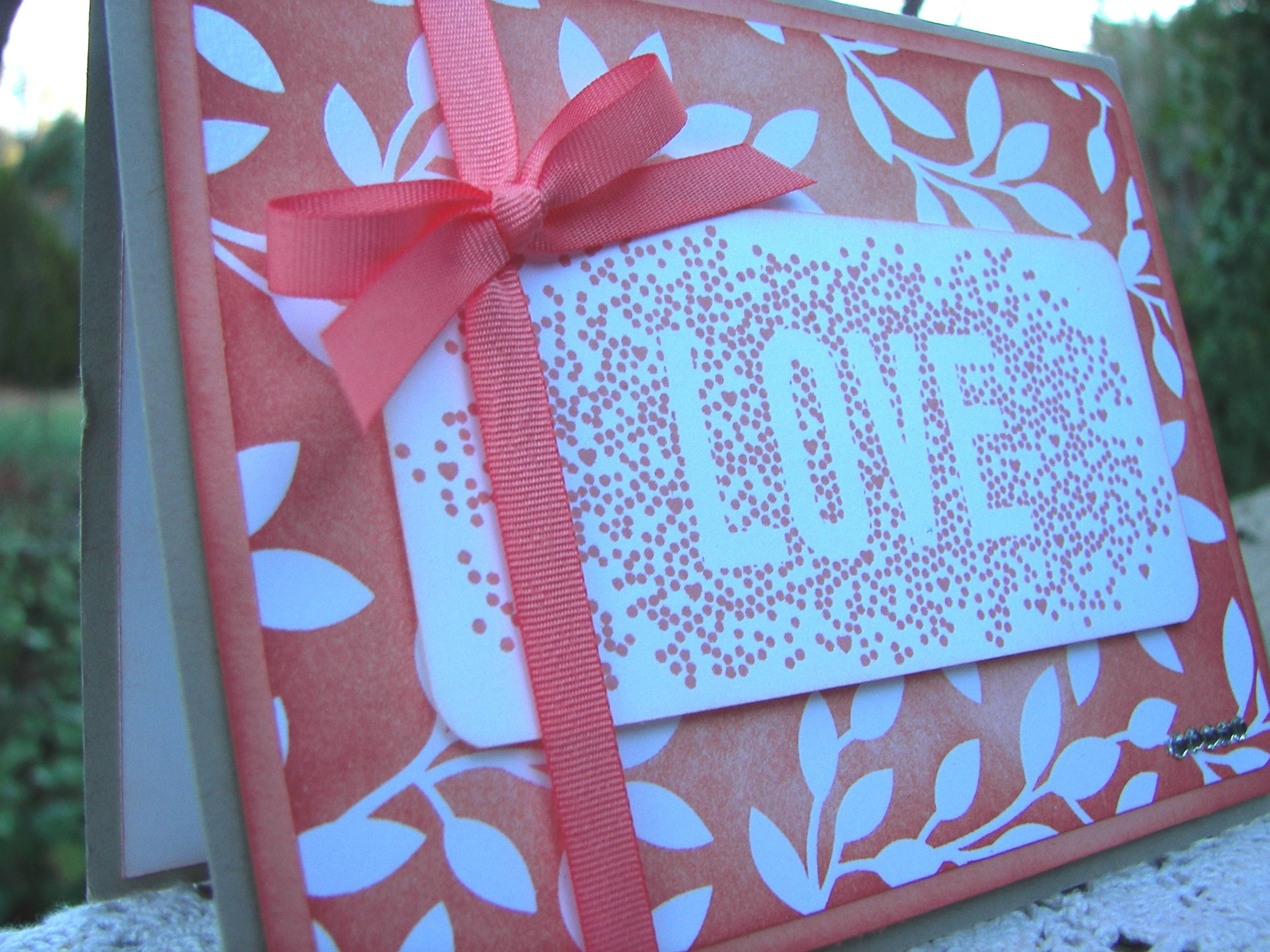I blended watermelon wonder with a touch of crumb cake and it turned out so nice. I chose crumb cake because I was using linen thread and wanted to tie in the colors. A large ribbon wasn’t going to work here. It took too much focus away from the flower and sentiment.