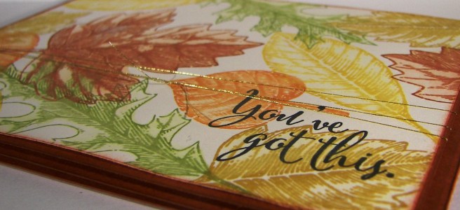 I tried to keep the whole hexagon theme going on here and it turned out nice. The paper is so great it speaks for itself. What a great set of paper, really. This piece is foiled and heavier than the others. After I die cut the large hexagon piece, using a die from the same set, I embossed it for another layer of dimension. The sentiment background was cut from another piece from the same set. The classic label punch worked pretty great for the actual sentiment and kind of nestled as well.