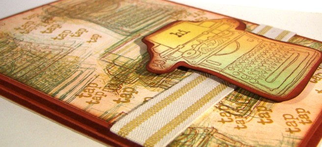 A bit of ribbon for the handle was all it took. I was trying to give it the look of a bucket handle. Not sure if that happened, but it looked pretty good. The large hexagon was placed before the tools, raised up on a couple of dimensionals. Then I just started wedging the tools in place and squished some tombo glue underneath to keep them in place. Fun!