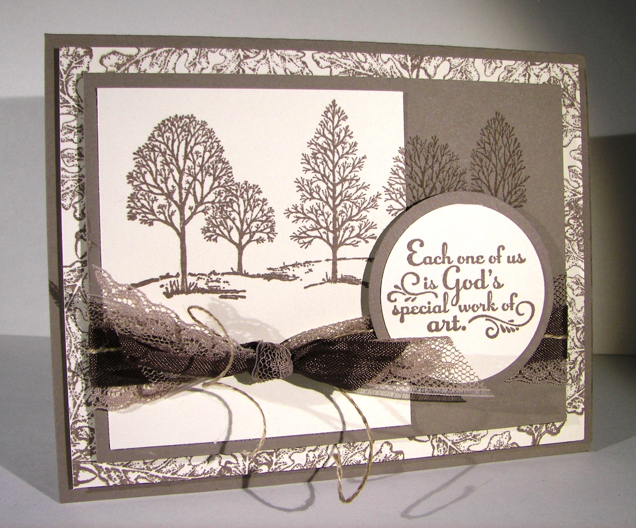 That is what this set is for. I used the scalloped flower from the Crazy About You set to make the background for the card and matching bag. I did a simple overlay of velum and scattered large rhinestones in the center of the flowers. So simple, yet so pretty.