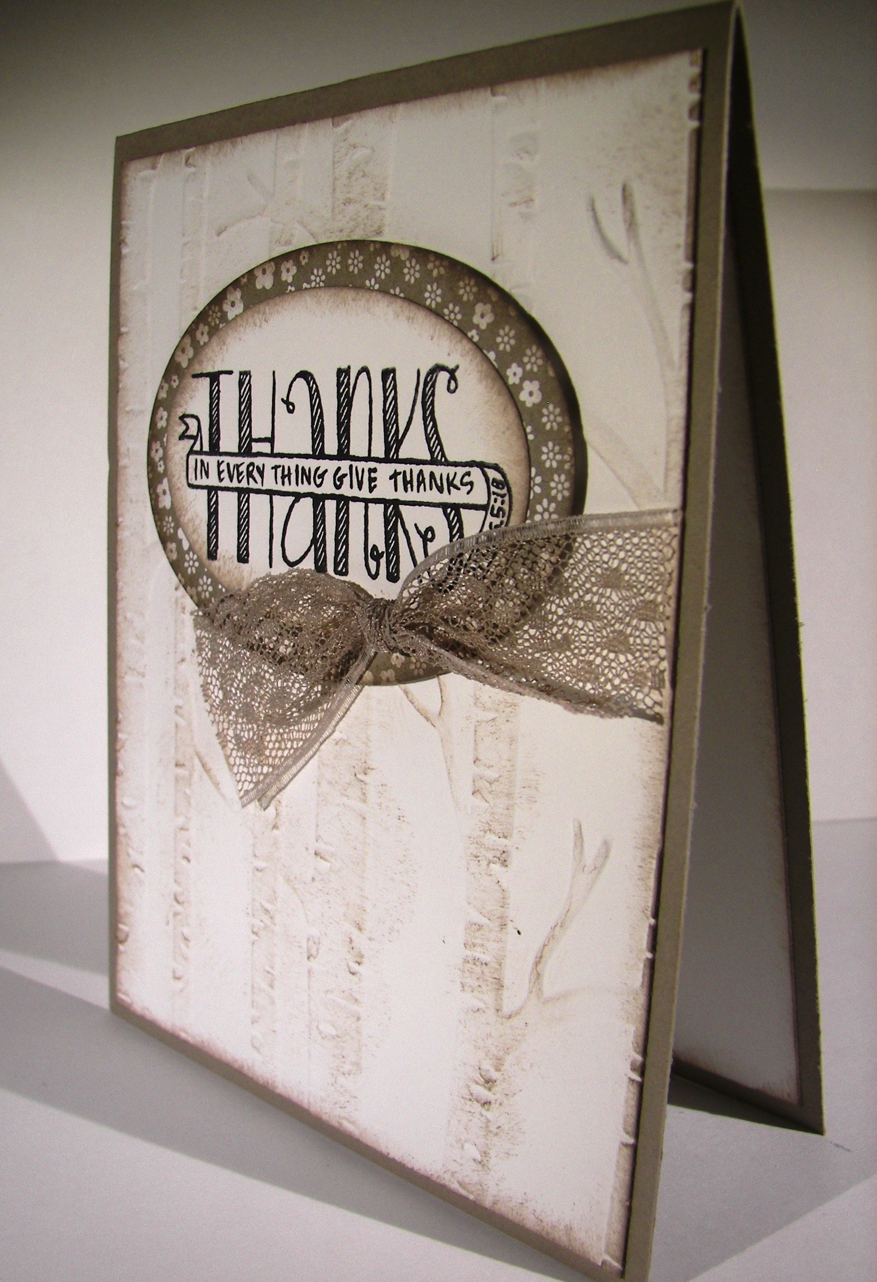 This lovely card came together pretty darn quick. A few simple layers with my favorite sponging left it nearly done.  I wanted to use the trim without covering up the beautiful embossing from my favorite embossing folder.  I think everyone should have this one. It is so great to have a tool like this that can be used in so many ways.  So I just attached a simple knot of trim instead of a card front wrap.