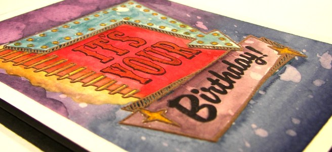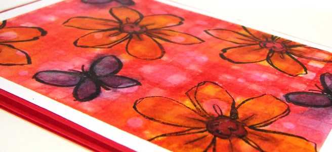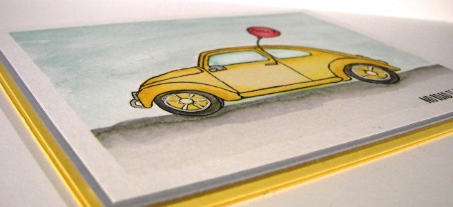 Big red just had to be alone. Seriously, how adorable. I couldn’t add anything else around him. Little rosy cheeks and a stamp on his belly. Giggles and grins all day! I wanted a little sentiment to go with my green guy, but decided to put my own on. My marker choice was a bit too stark for my taste, but live and learn, right?