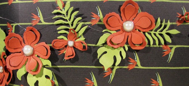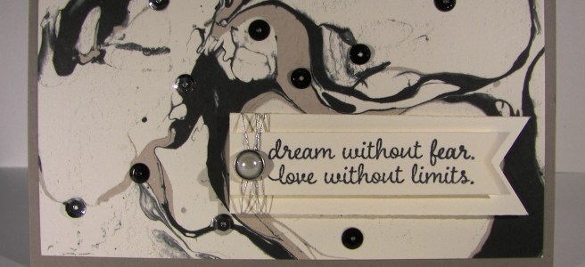The die cut was not as easy to decide because there are so many wonderful ones to choose from. I kept it simple though and went for a favorite. The glimmer paper was cut to size and then I did the die cutting from the center, knowing it wouldn’t show, and I could make that paper last longer. Glimmer paper is such a weakness for me, especially in colors like this. The flourish was glued down with tombo and then the designer paper adhered to the glimmer paper with fast fuse. Regular adhesive and glimmer paper aren’t friends, it needs something stronger.