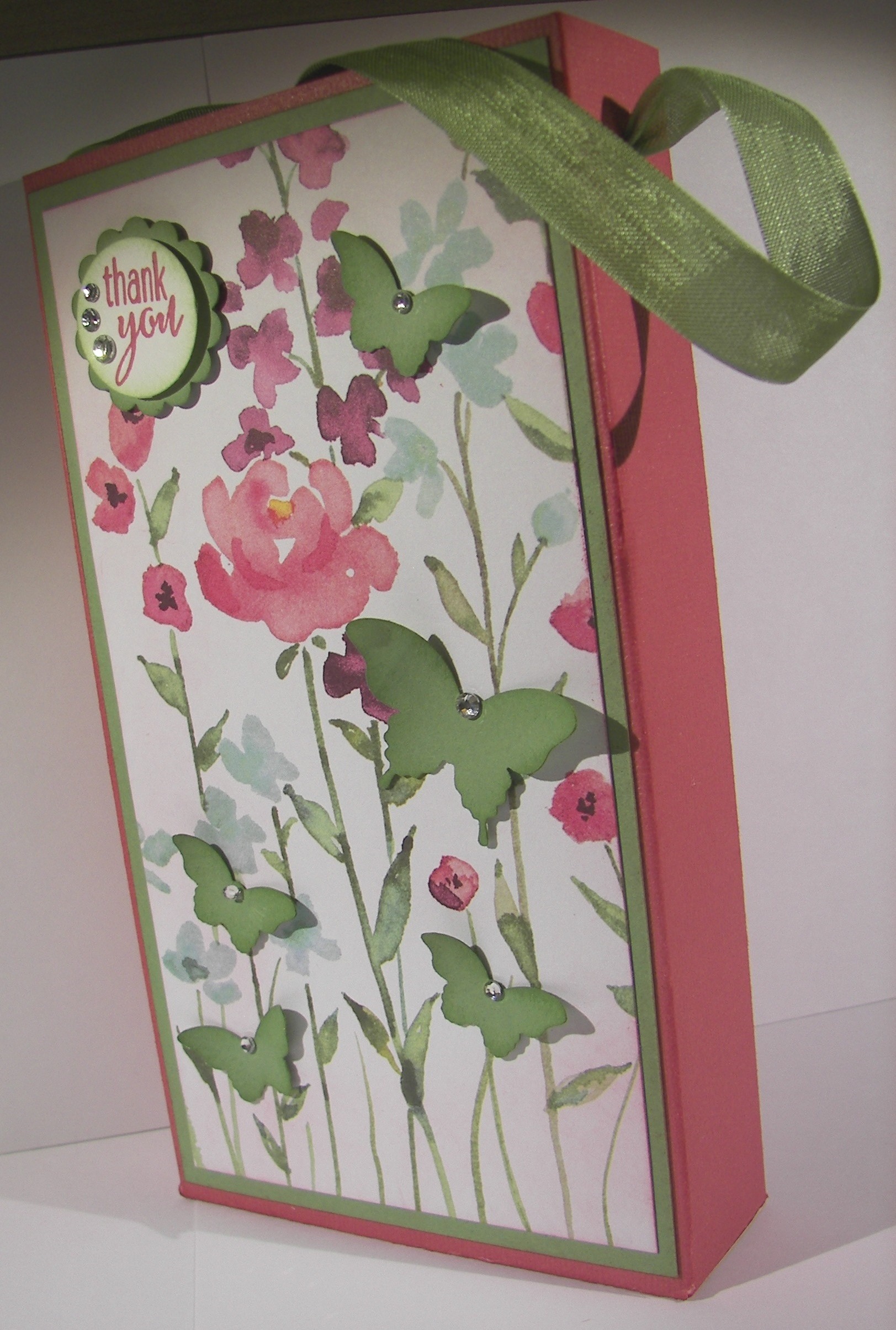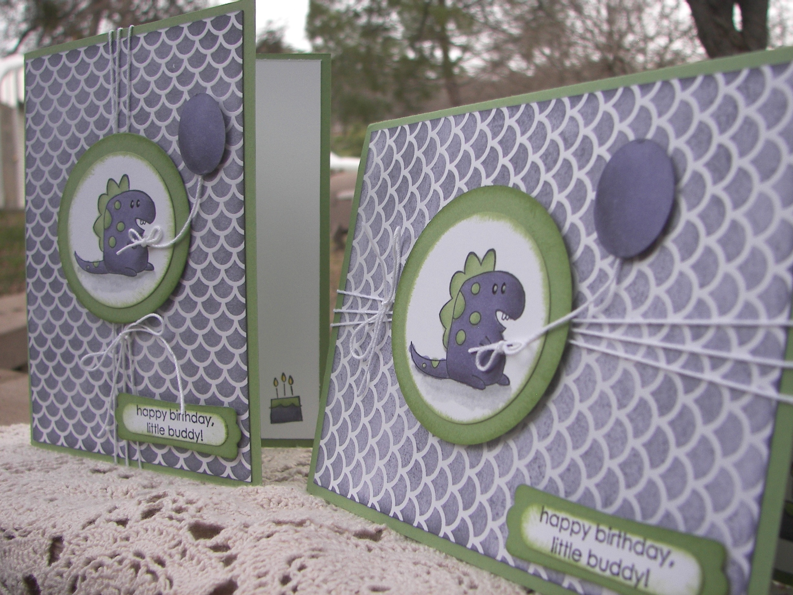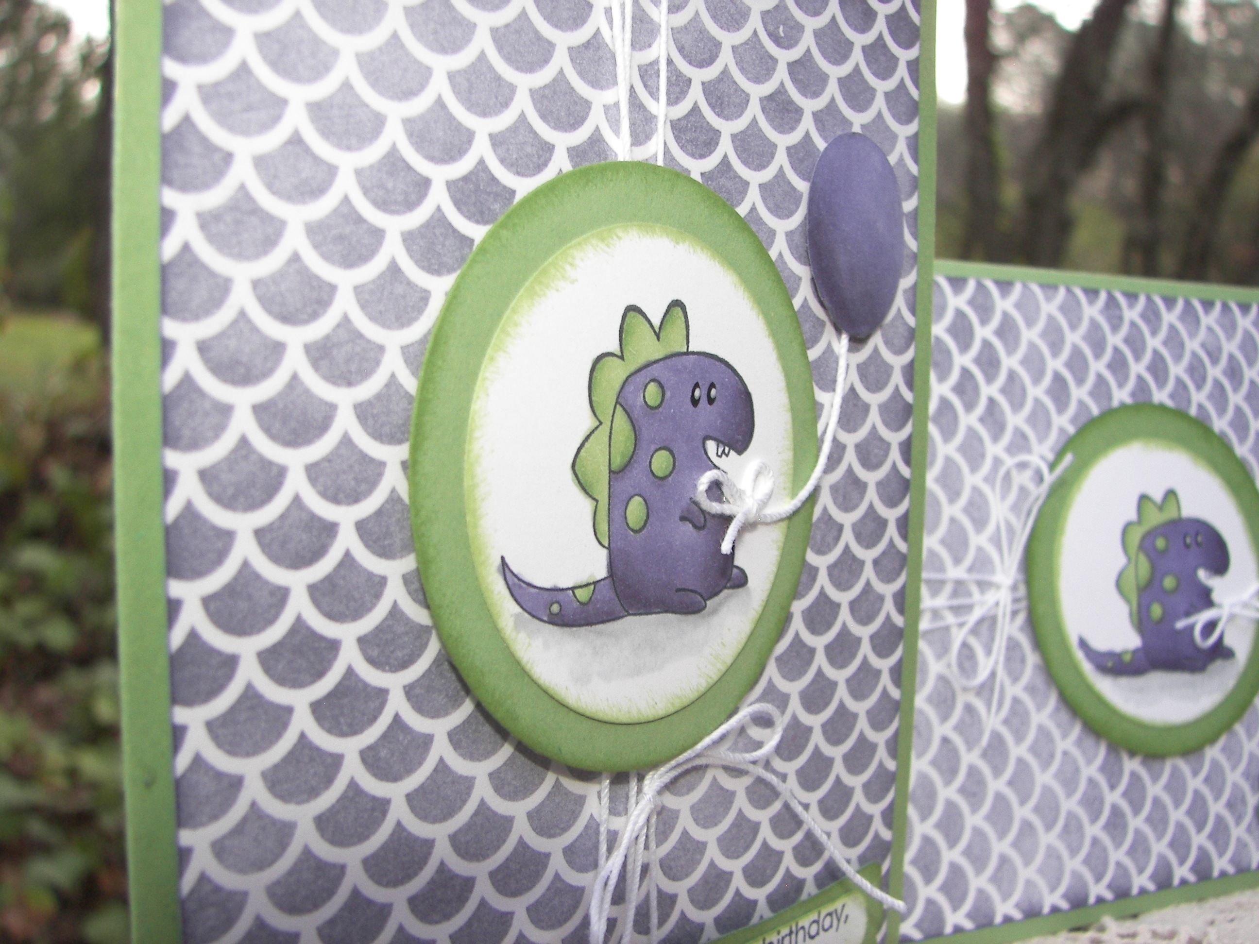 The background, and a bit on the inside, was stamped with the spotted stamp from the same set. It is random, but has a defined shape to allow filling in the entire space without looking repetitive. Very nice, very nice indeed. The front piece was wrapped in some very vanilla satin ribbon and layered up on dimensionals. The sentiment was left off completely allowing this to be an all occasion card ready to go.